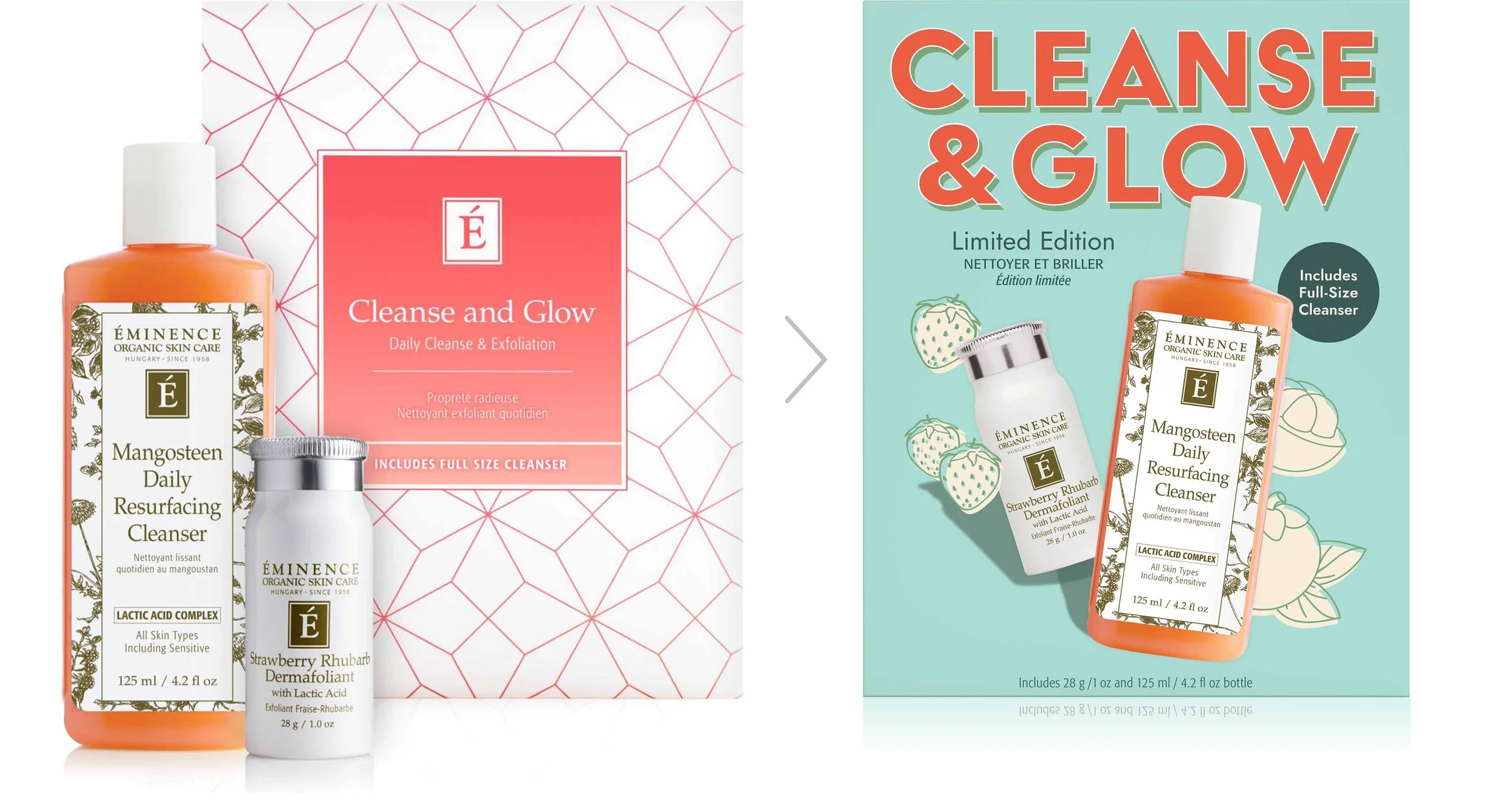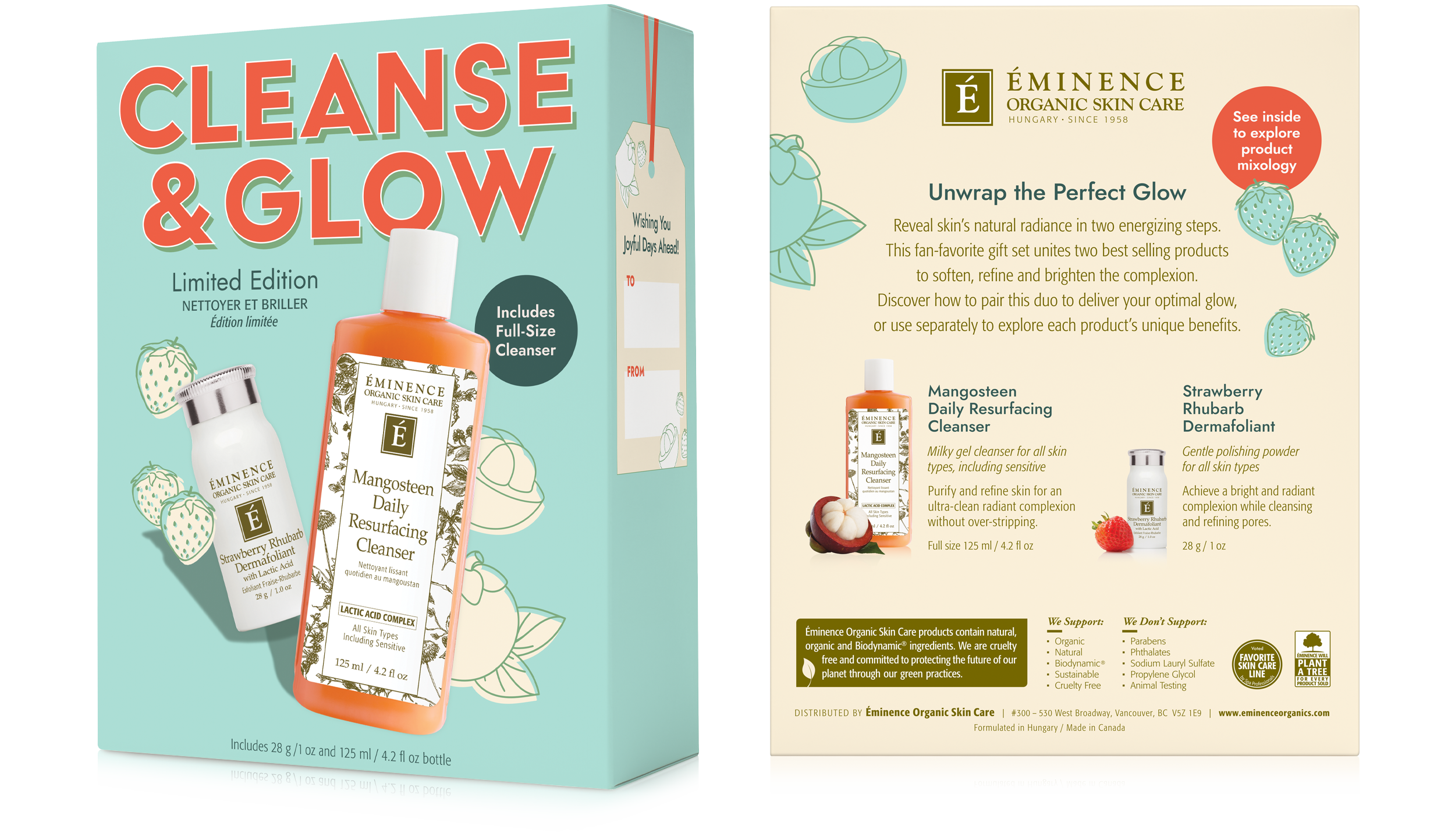 The Cleanse & Glow Gift Set refreshed a sold-out holiday concept with a modern look, designed for non-denominational gifting and to keep leftover stock visually relevant.