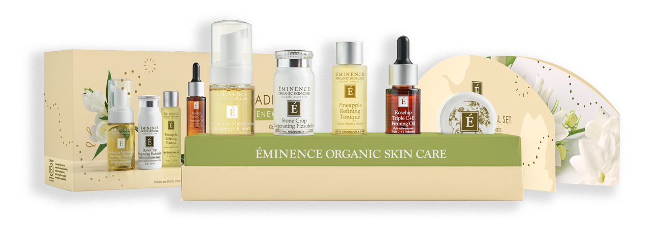 The “Radiance Renewal” box set turns Eminence Organics’ award-winning minis into a polished, gift-ready routine for spa partners and online shoppers. A custom rigid box, topped with a ribbon and festive gold foil, creates a luxe unboxing moment and strong shelf presence. After selling out in just two months, the set proved so popular it became a year-round offering.